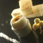 Method / Mustard Butter Place vinegar and white wine into a pot with shallots, reduce over high heat by half and pass through a fine sieve. Put all other ingredients in a food processor, add the vinegar, mix and blend until smooth. Scrapeout and roll in cling film, and set into the fridge until set.